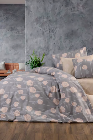 4 Pieces Lines Strip Beige Double Duvet Cover Set