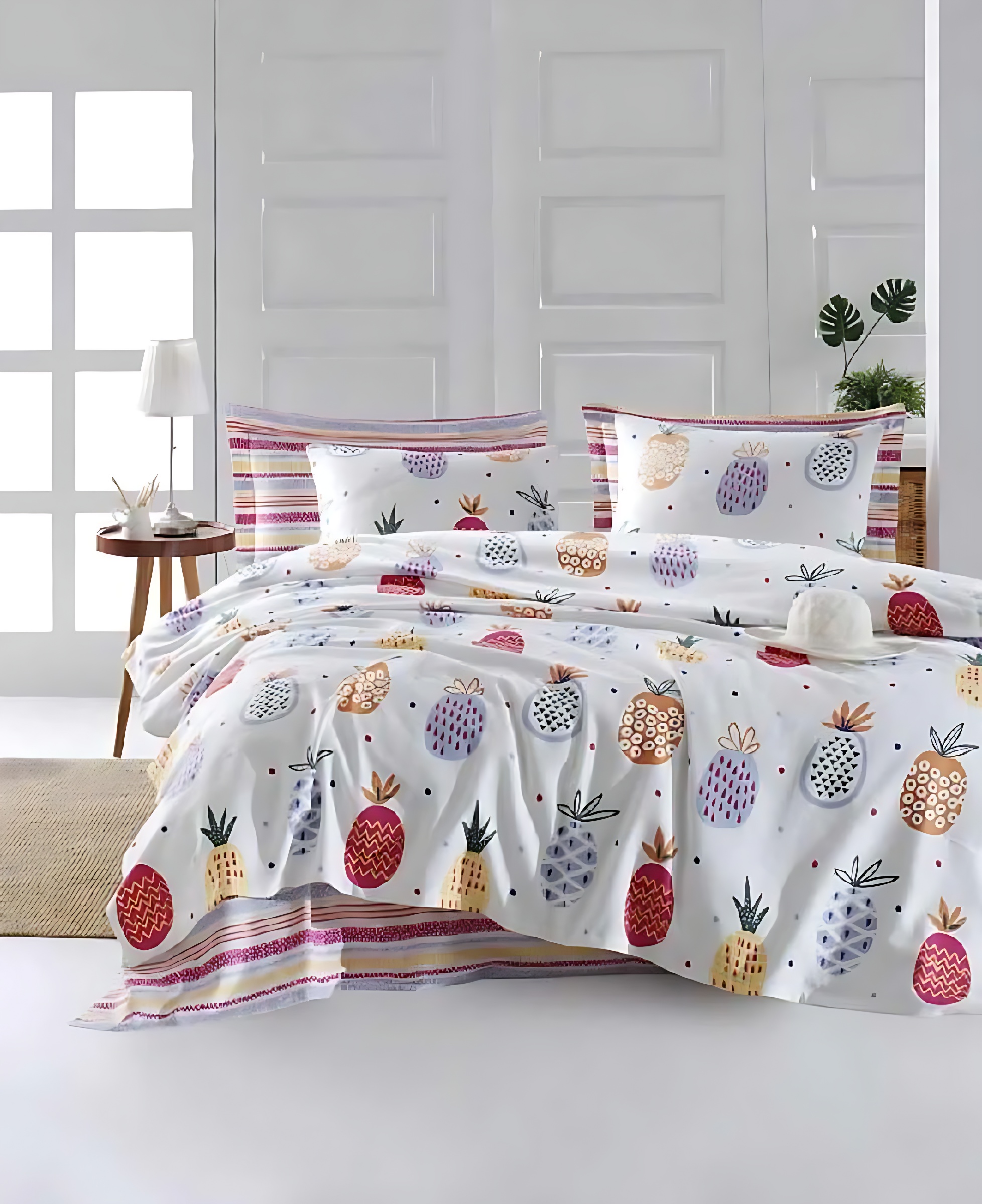 Simple and elegant pattern, 100% cotton. Fringed on both ends. With its soft texture and highly breathable fabric, it provides comfortable sleep in both summer and winter periods. It is treated responsibly towards human health and the environment.